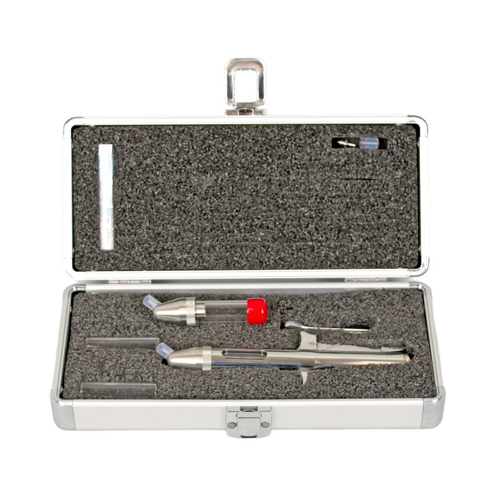 The Dental MadaJet XL is a needle-free instrument designed to inject medication agents with virtually no pain. It significantly reduces the fear and trauma associated with traditional needle and syringe injections. The Dental MadaJet XL comes complete with an angled head assembly, Extenda tips, sheaths, stand, disinfectant cleaning solution, and a custom case. Fully autoclavable, it ensures high standards of hygiene and is ideal for use in various dental settings. Comes non-sterile.