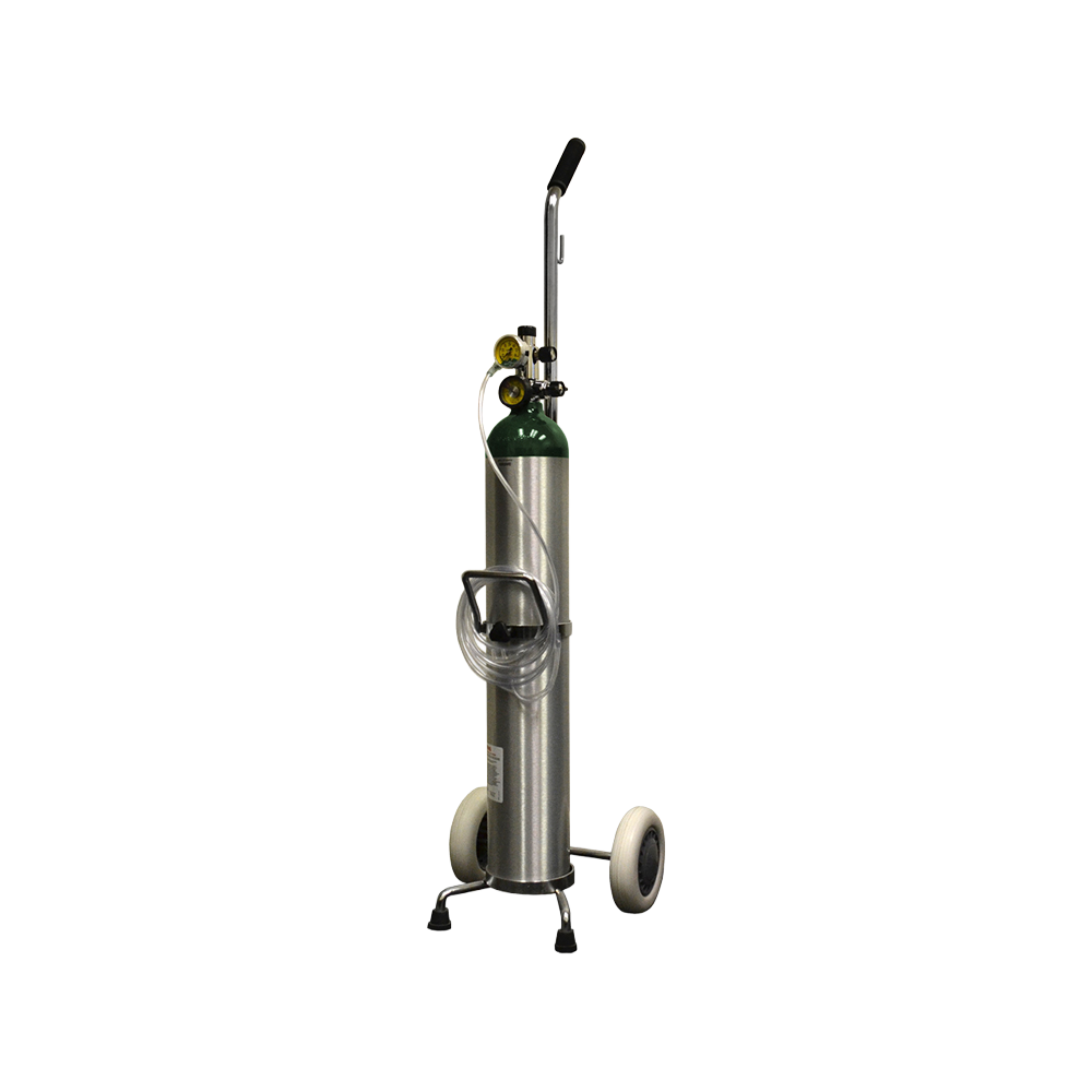 1603ME Aluminum Oxygen Cylinder, 1309A adjustable flow regulator (2-8 LPM), nasal cannula, 370C cart (Empty).