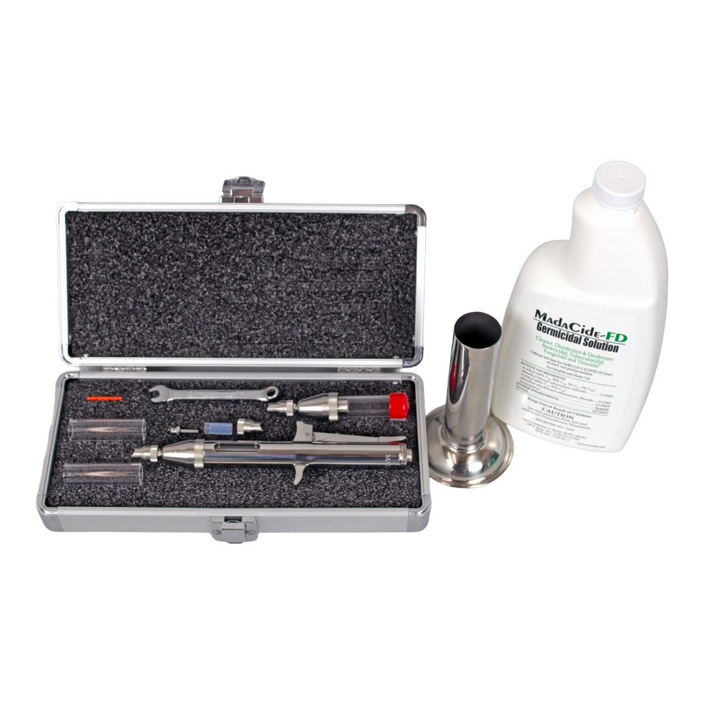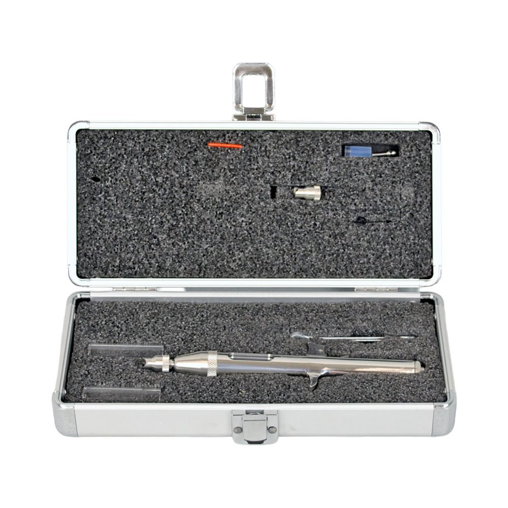 Straight head assembly, tips, stainless steel sheath, stand, cleaning solution, custom case |